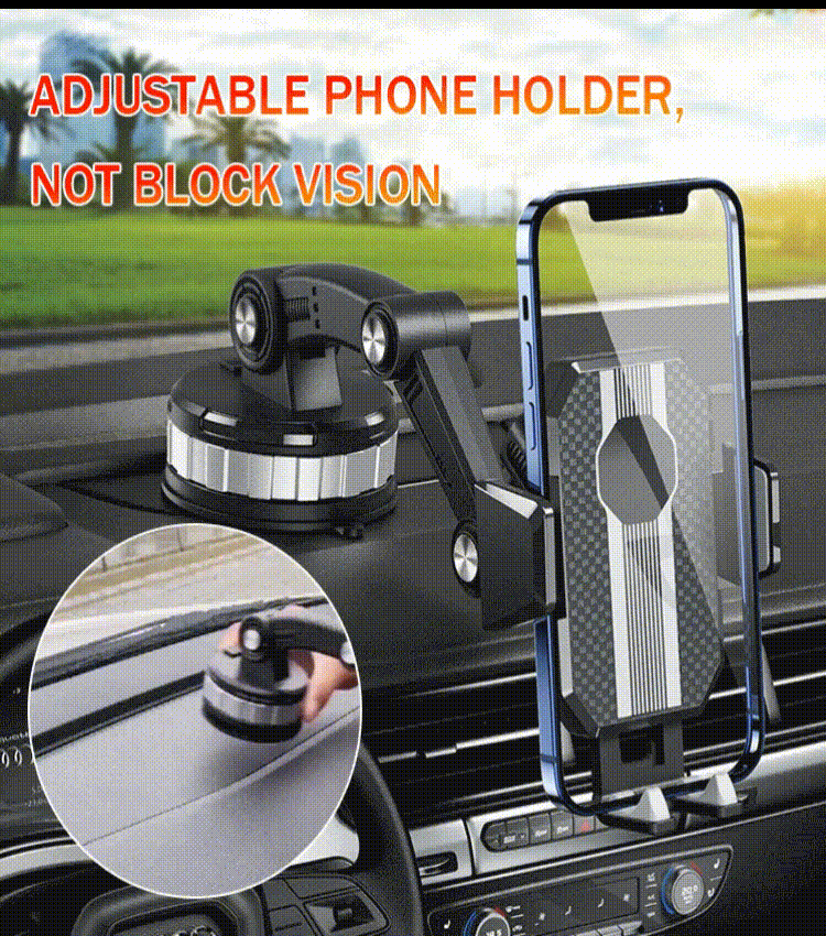 يتميز حامل الهاتف هذا بتقنية الامتصاص الفائقة التي تضمن بقاء هاتفك مثبتًا بإحكام حتى في الطرق الوعرة. بفضل قاعدة الشفط القوية، يمكنك الاعتماد على ثبات الهاتف دون الحاجة للقلق من سقوطه أو اهتزازه. مما يجعل رحلاتك أكثر أمانًا وسهولة